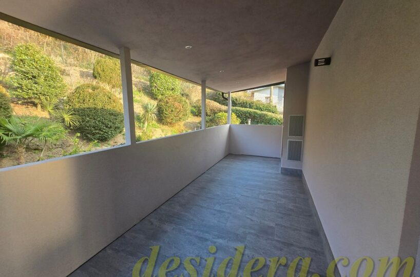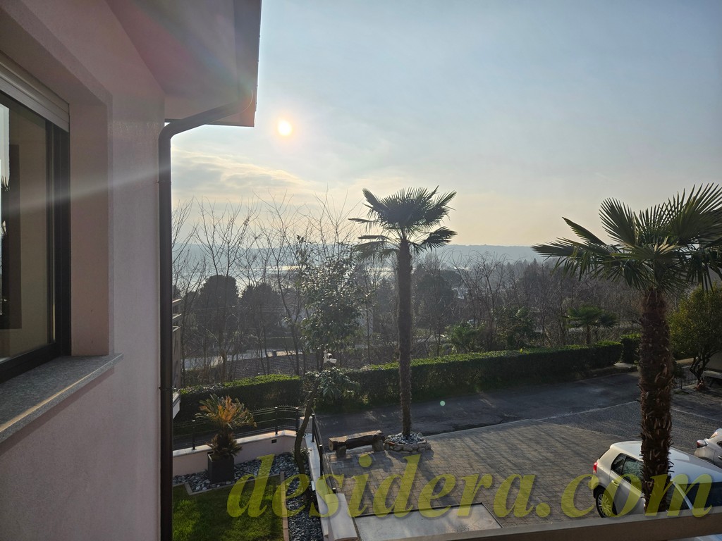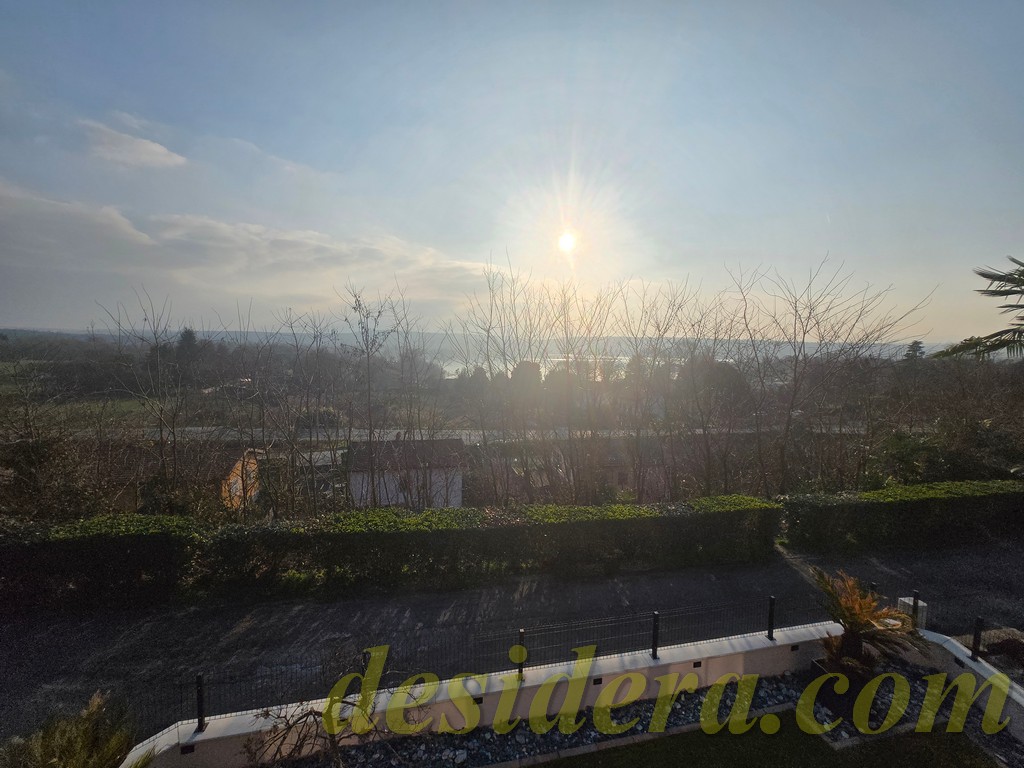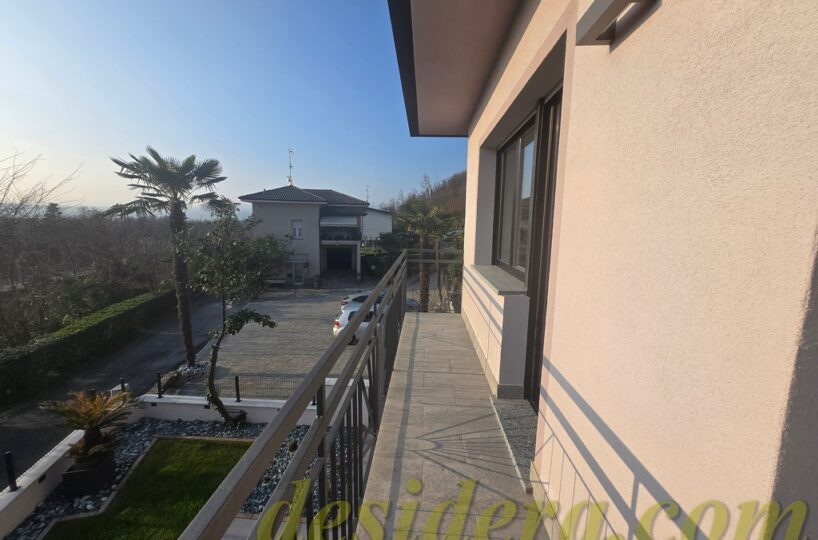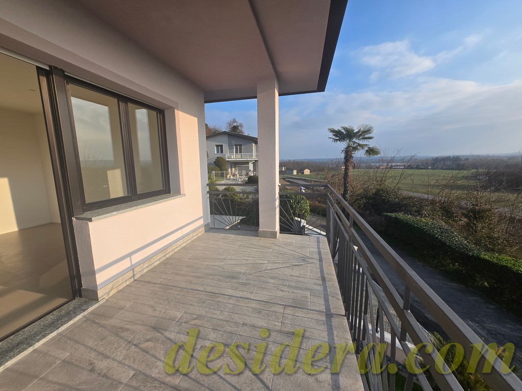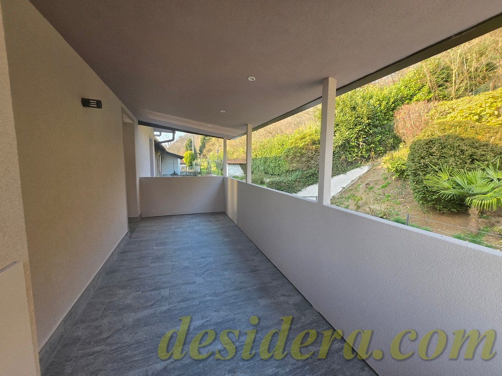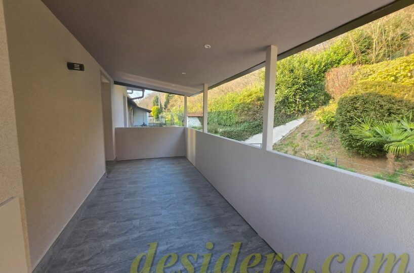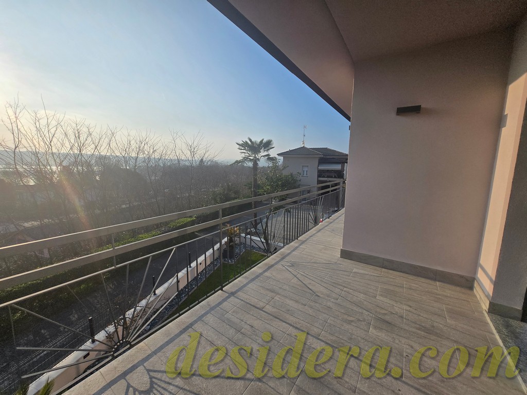 Immobiliare Desidera in Lisanza di Sesto Calende (Va) propone in locazione trilocale con vista panoromica sul lago, ristrutturato ed arredato a nuovo di 100 mq circa, 16mq di veranda coperta e balcone con terrazino vista lago di 14mq