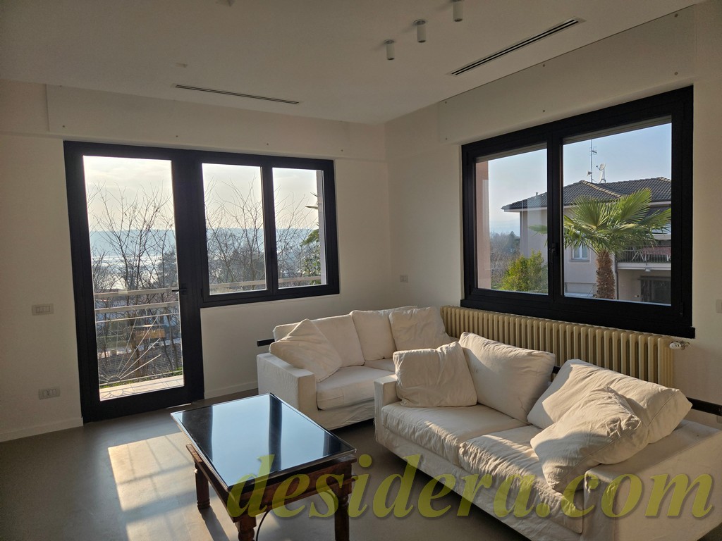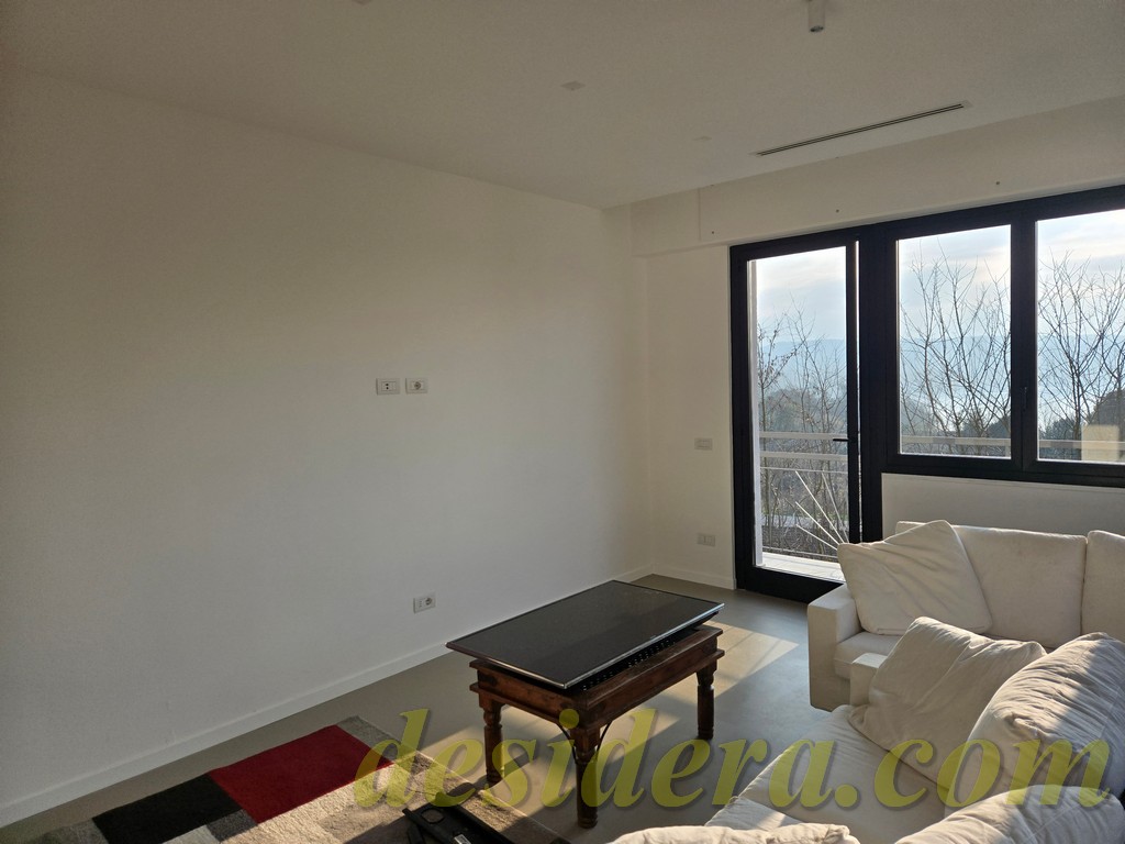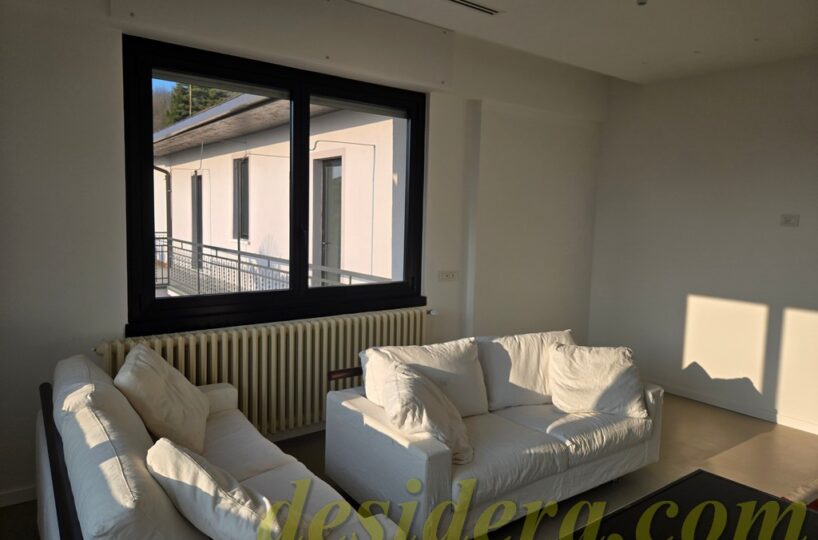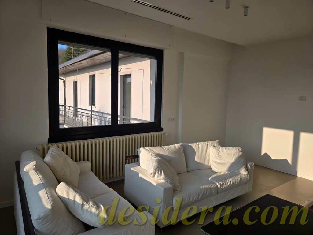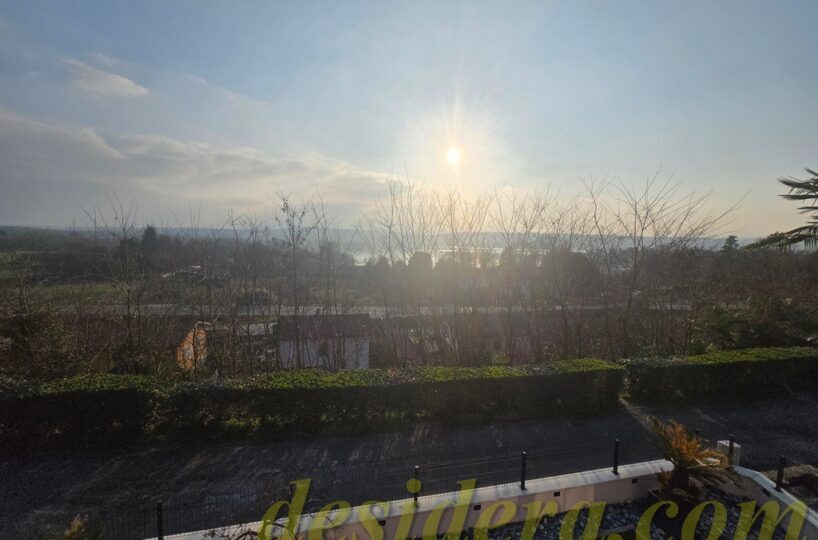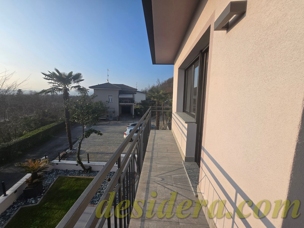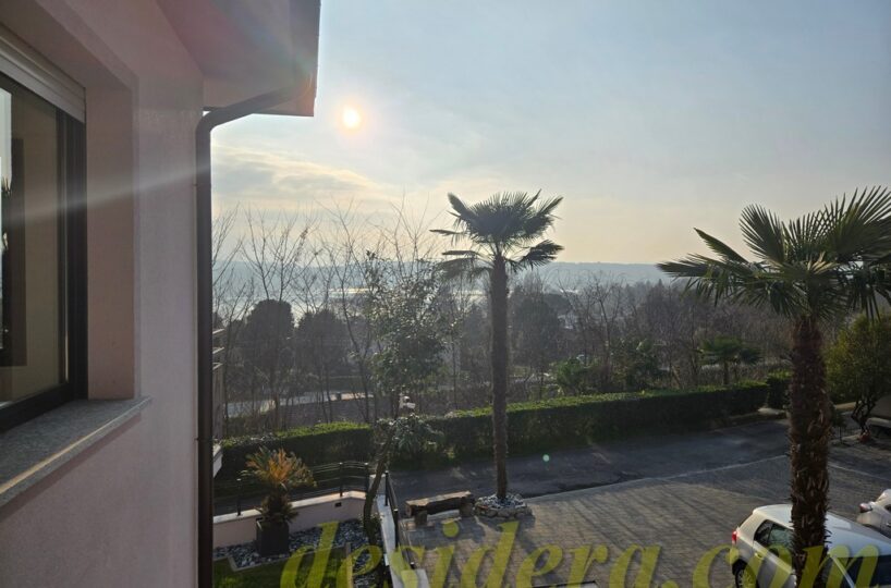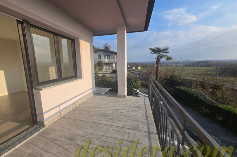 Immobiliare Desidera in Lisanza di Sesto Calende (Va) propone in locazione trilocale con vista panoromica sul lago, ristrutturato ed arredato a nuovo di 100 mq circa, 16mq di veranda coperta e balcone con terrazino vista lago di 14mq