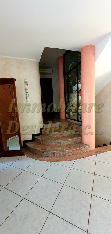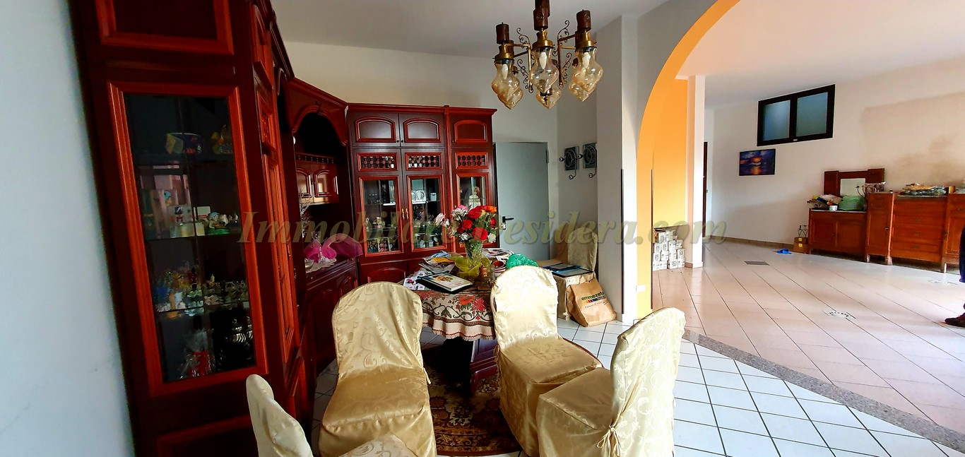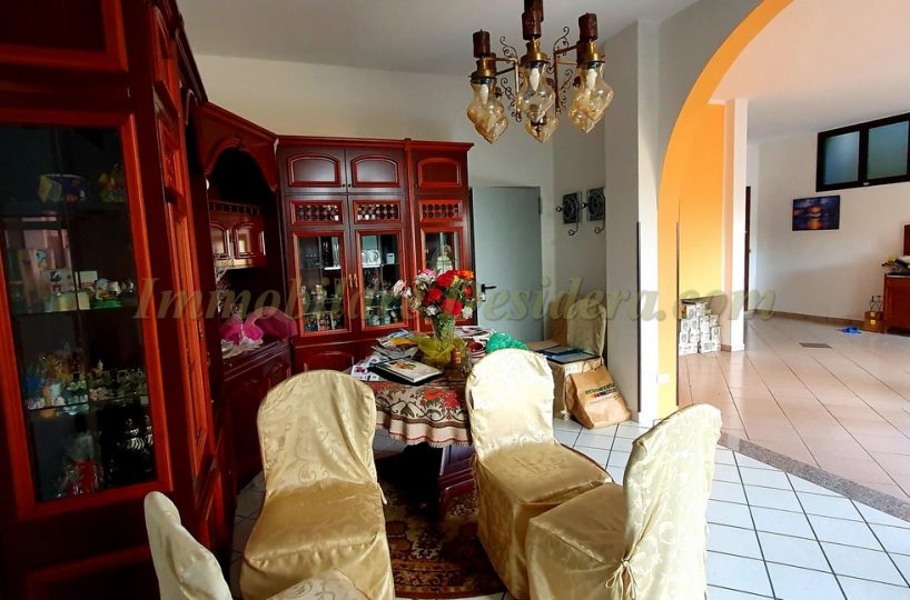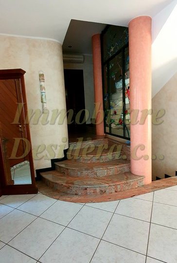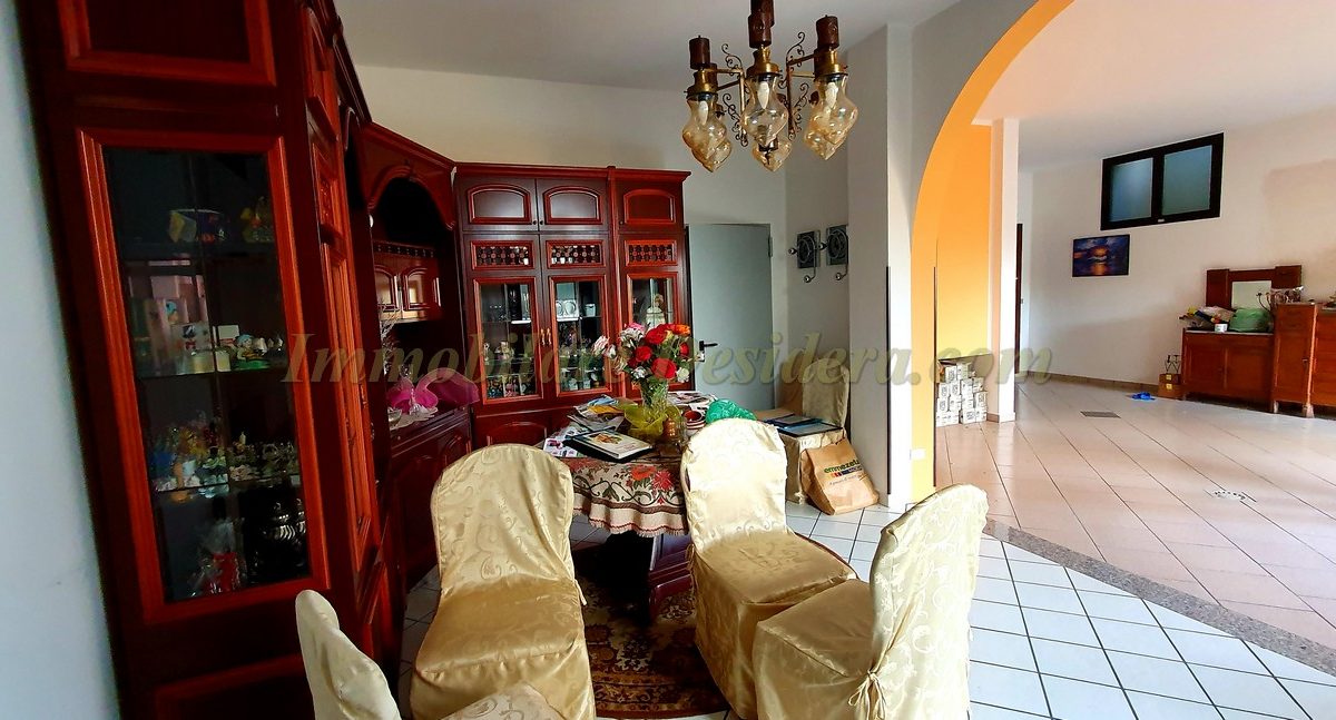 La proprietà, nelle vicinanze del centro, è così composta: al pian terreno soggiorno, taverna, sala da pranzo, cucina abitabile e box con doppio accesso automatizzato per una capienza di 10 auto circa, camera blindata, camera da letto, locale caldaia, ripostiglio, stireria e bagno con doccia. Al primo piano troviamo: ingresso, ampio soggiorno con camino e porte scorrevoli per accesso alla veranda, cucina arredata abitabile, veranda coperta, bagno con vasca idromassaggio, 3 camere da letto e bagno di servizio. Al secondo piano: Vano unico mansardato, terrazzino e sottotetto. Termo autonomo, doppi vetri, aria condizionata, canna fumaria e zanzariere.