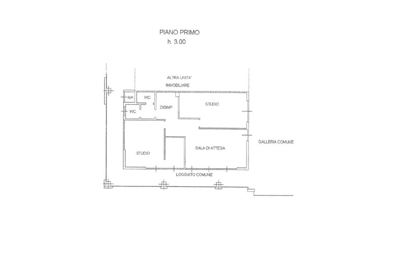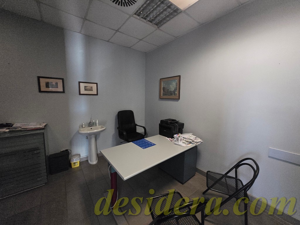 Ubicato in centro paese, in centro commerciale con forte visibilità e ampi parcheggi, l’ufficio attualmente adibito a studio medico è posto al primo piano con ascensore. 112 mq quadrati commerciali così composti: sala d’aspetto luminosa, 3 uffici, antibagno, bagno e bagno disabili ed archivio. Termo autonomo.