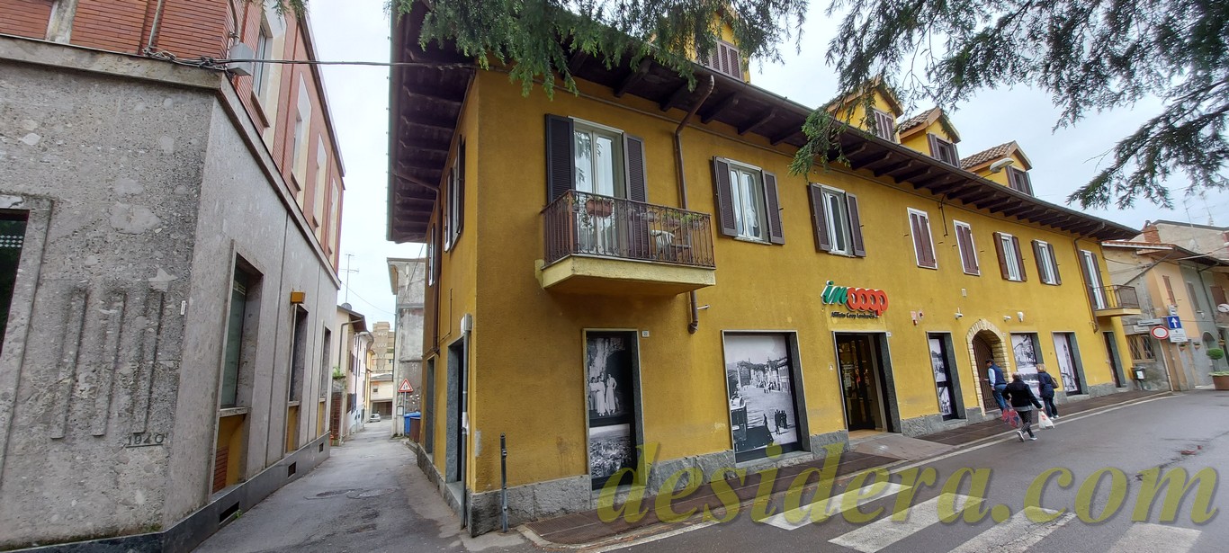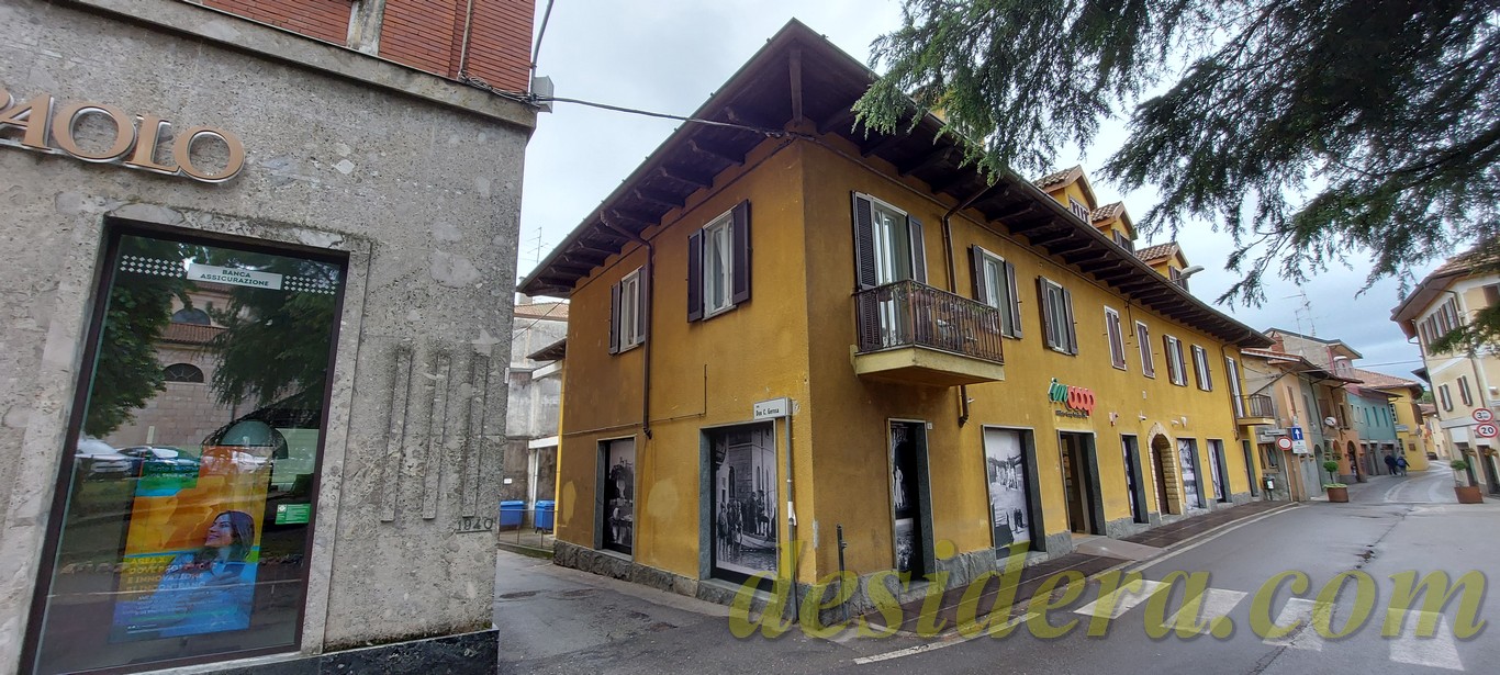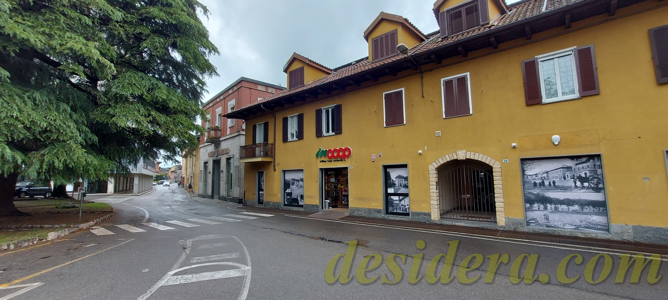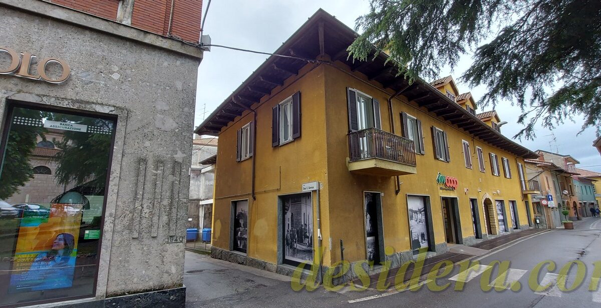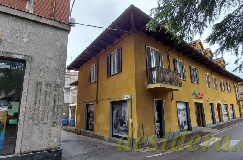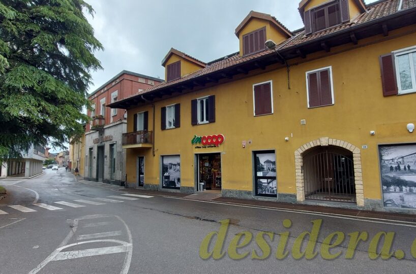 Immobiliare Desidera nel cuore di Angera (VA) propone in vendita locale commerciale al piano terra di 443 mq con 65mq di retro negozio ed 226 mq al piano interrato, appartamento trilocale al piano superiore di 101mq e posto auto coperto di 14mq in autorimessa condominiale