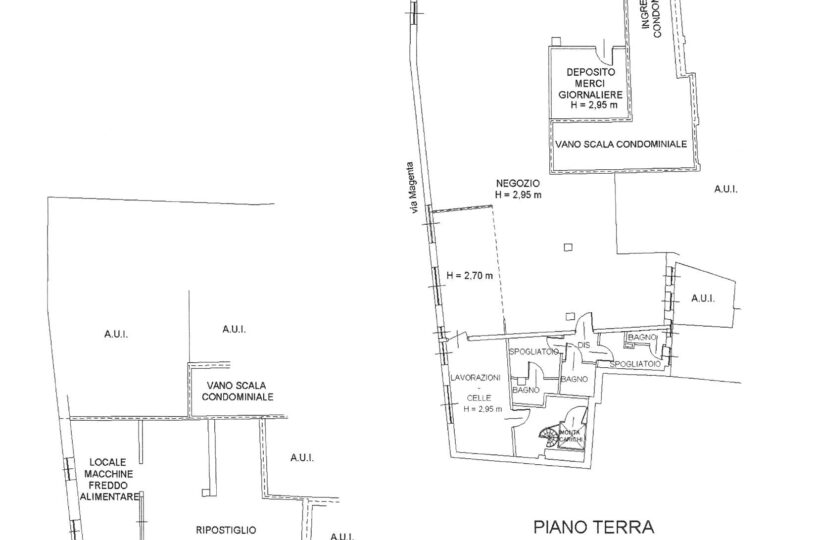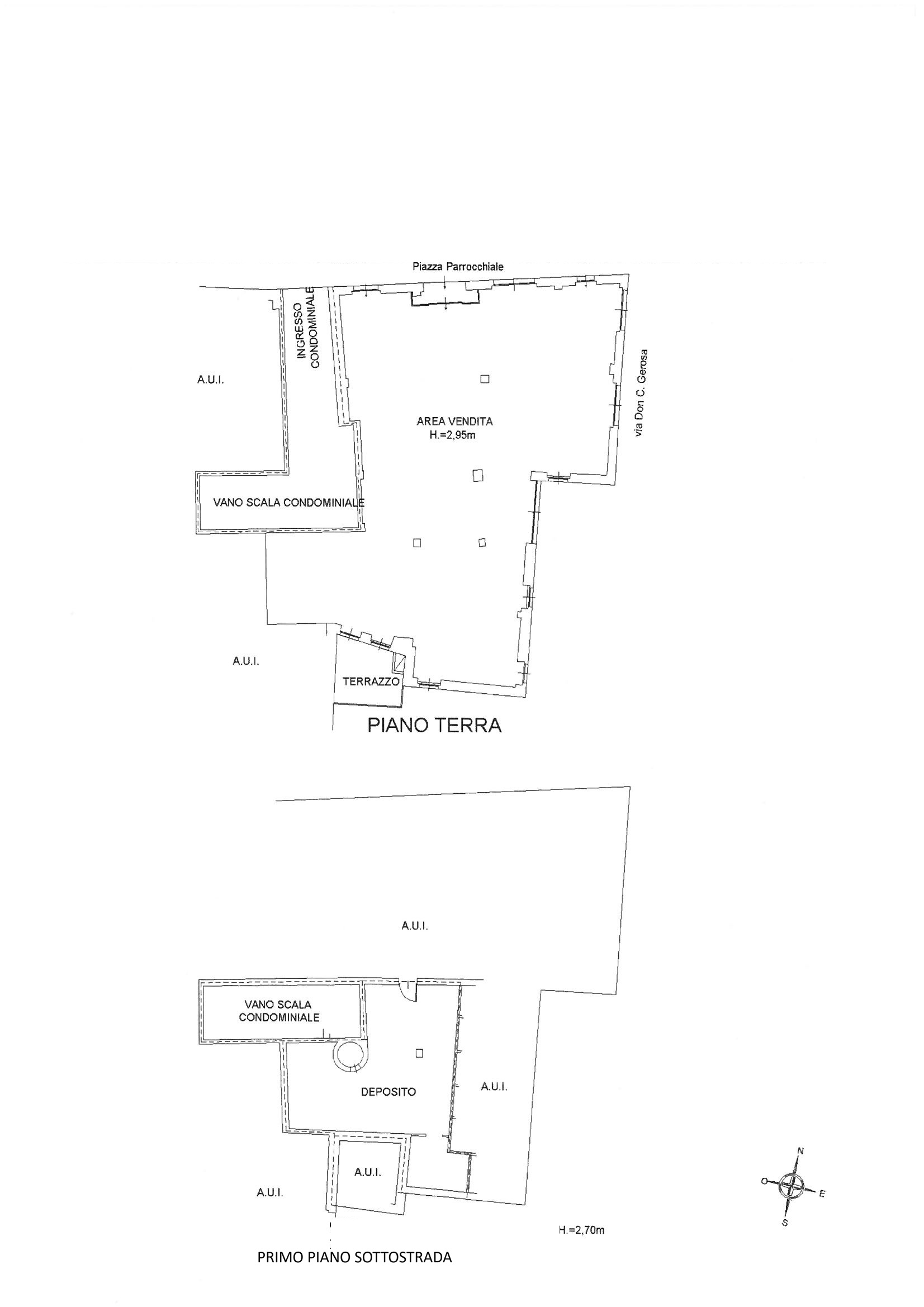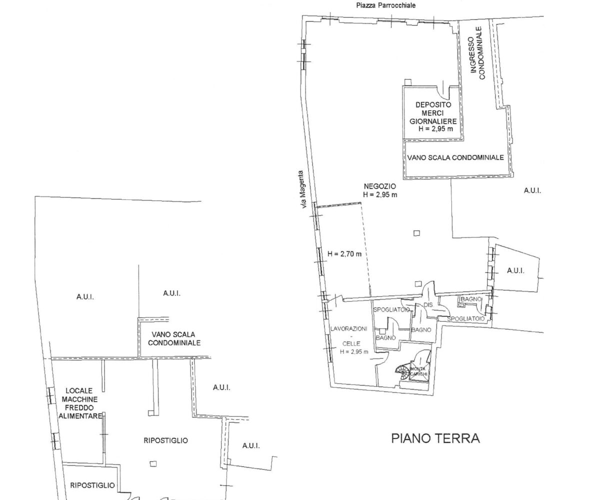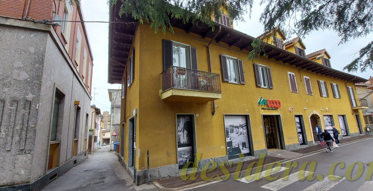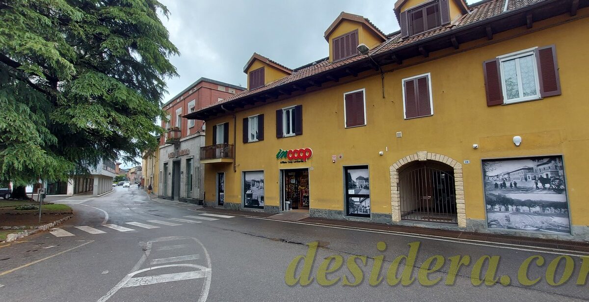 Immobiliare Desidera nel cuore di Angera (VA) propone in vendita locale commerciale al piano terra di 443 mq con 65mq di retro negozio ed 226 mq al piano interrato, appartamento trilocale al piano superiore di 101mq e posto auto coperto di 14mq in autorimessa condominiale